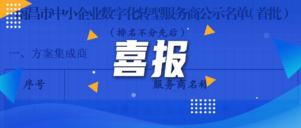 日前,南昌市中小企业服务局下发市中小企业服务局关于中小企业数字化转型服务商遴选结果的公告,江西智研院成功入选2023年南昌市中小企业数字化转型服务商首批方案集成商名单。 研究院聚焦汽车及汽车零部件制造、生物医药制造等重点行业,为中小企业提供普惠化、便利化、精准化的...