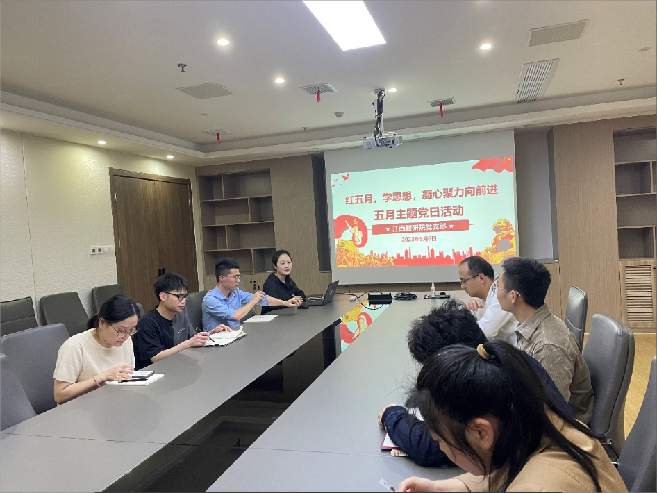 2023年5月6日,江西智研院党支部组织开展以“红五月,学思想,凝心聚力向前进”为主题的5月份主题党日活动。 会议由支部书记黄淑敏同志主持,全体党员参加了活动。 会议由支部书记黄淑敏同志主持,全体党员参加了活动。  ...