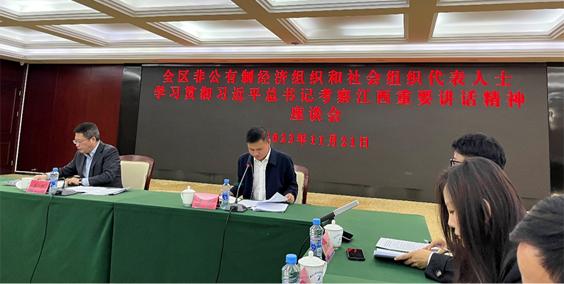 为学习贯彻习近平总书记考察江西重要讲话精神,2023年11月21日上午,小蓝经开区非公和社会组织委员会组织召开全区非公有制经济组织和社会组织代表人士学习贯彻习近平总书记考察江西重要讲话精神座谈会。会议由区党工委委员、管委会副主任、区两新综合党委书记李虎主持,区党工委副书记、一级调研员李碧、区两新综合党委委员...