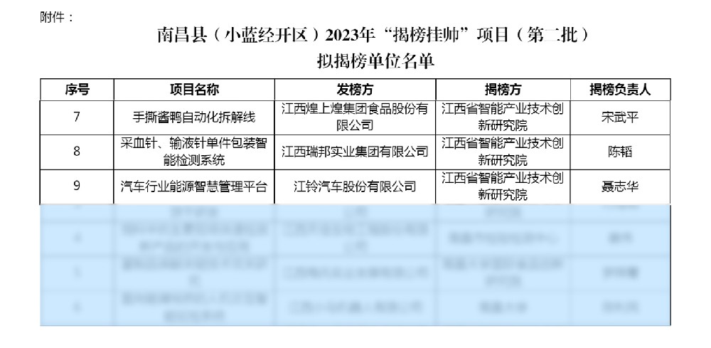 江西智研院继成功中标小蓝经开区2023年“揭榜挂帅”首批项目以来,再度成功揭榜第二批“揭榜挂帅”的3个项目:汽车行业能源管理平台建设、医疗器械行业智能检测系统、绿色食品行业自动化生产线建设。 ——来自江铃集团的汽车行业能源智慧管理平台项目,通过建立...