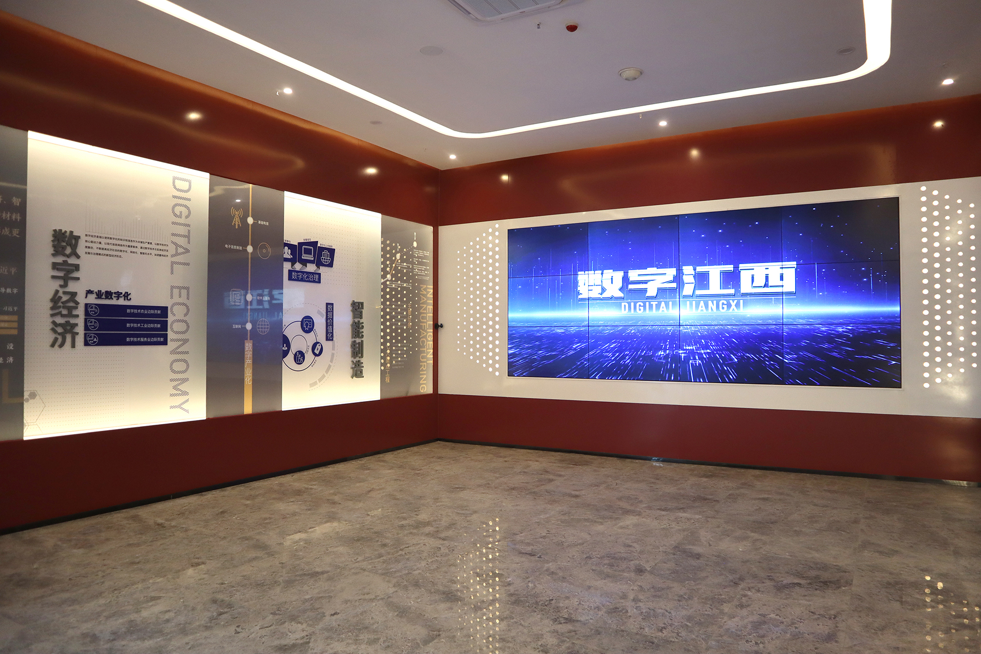 展厅面积约1500平方米,以习近平考察江西提出的“要聚焦主导产业,加快培育新兴产业,改造提升传统产业,发展现代服务业,抢抓数字经济发展机遇”意见为序,展开对数字中国、数字江西、数字南昌、数字南昌县(小蓝经开区)的解读。在产业区对南昌“8810”产业行动计划进行全方位呈现,展现龙头企业风貌及其数字化升级所取得的成效。