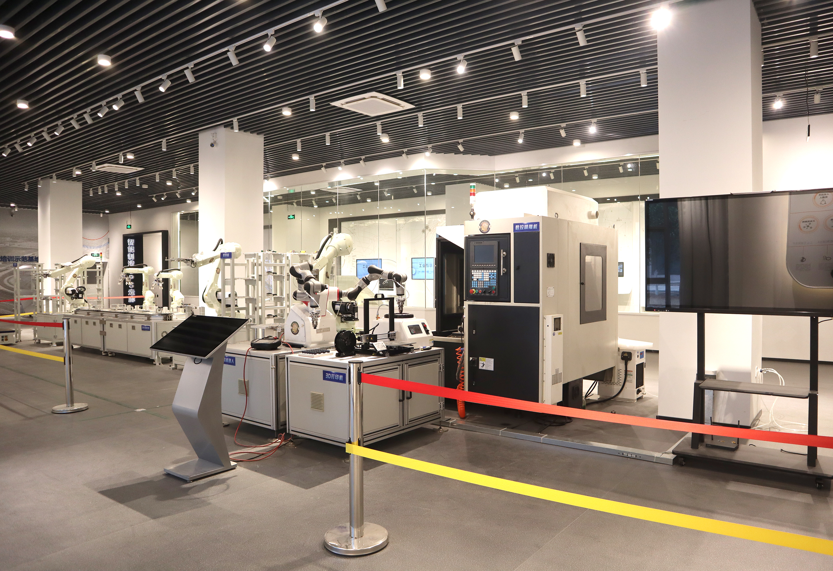 应用场景区展示江西智研院自主设计集成的个性化定制与柔性装配生产线、自主研制的工业机器人教学工作站。CPS走廊生动展示云网边缘、工业大数据、工业互联网、产业智联网。在智能应用区向观众详细展现了研究院所打造的应用标杆示范工程项目。研究院积极推动数字经济和实体经济融合发展,以实现更大幅度的产业升级和跨越式的发展。