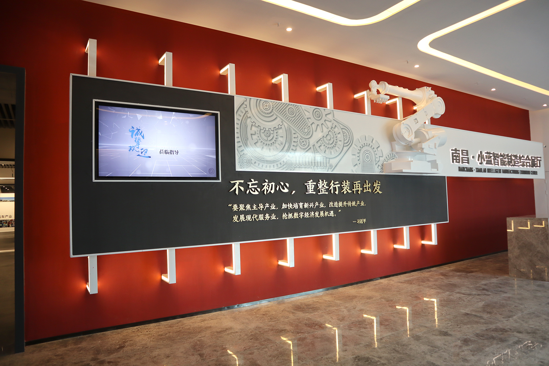 为建设一个集宣传参观、技术展示、科普、教育培训等为一体的数字经济与智能制造宣传示范平台,经过精心筹划和实施,南昌·小蓝智能制造综合展厅于2020年12月竣工并投入使用,截止2024年9月底,接待省、市、县区各级领导及社会各界160余次。